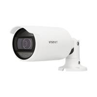 Wisenet A-serie bulletcamera, 2 MP bij 30 FPS, 2,8 mm lens met vast brandpunt, FoV H: 113,7° / V: 61,5°, WiseStream II, drievoudige codec (H.265/H.264/MJPEG), 120 dB WDR, IR-LED's 30 m (98,43 ft), dag en nacht (ICR), virtueel gebied (inbraak/binnenkomst/uitgang), virtuele lijn (kruising/richting), bewegingsdetectie, sabotage, gangzicht, SD-kaart, IP66, PoE, wit.