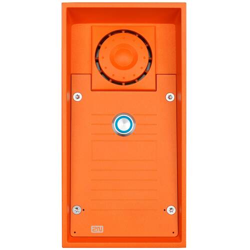 2N, Helios IP Safety vandaalbestendige buitenmodule met 1 drukknop met achtergrondverlichting en 10 Watt dubbele luidspreker, PoE/12 VDC.