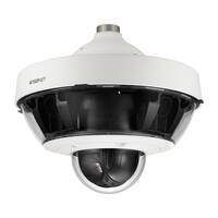 Netwerkvandaal voor buiten Multi-sensor Multi-directionele camera, (2MP/5MP X 4 sensoren apart verkocht) 8MP ~ 20MP (2MP @ 60fps of 5MP @30fps) vaste focale lensmodules + 2MP 32x optische zoom PTZ, drievoudige codec H.265/ H.264/MJPEG met WiseStream II-technologie, 150dB WDR @ 2MP of 120dB @ 5MP, defocusdetectie, ingebouwde analyse, 4x SD-kaart, gangzicht, HLC, mistdetectie, DIS (Gyrosensor), Audio I/O (PTZ alleen ch), HPoE (injector meegeleverd), IP66/IK10, -40°C ~ +55°C (-40°F ~ +131°F). Witte camerabody. Nieuwe gemakkelijke installatie dop. SFP-poort in injector.