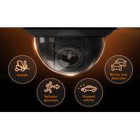 Maximum 4MP resolution (1/1.8” sensor) 4.6~9.35mm(2.0x) motorized varifocal Long range WiseIR distance up to 30m (98.43ft) Color: 0.03Lux(F1.3, 1/30sec, 30IRE) BW: 0.003Lux(F1.3, 1/30sec, 30IRE) PRTZ for easy installation 2 times per a day PTRZ preset support Analytics events based on AI engine : Object detection (Person/Face/Vehicle/License plate), IVA (Virtual line/Area, Enter/Exit, Loitering, Direction, Intrusion), Slip&Fall detection, Face mask detection, Social distancing detection Business intelligence based on AI engine : People/Vehicle/Crowd counting, Queue management, Heatmap Support BestShot and full attributes Support Dynamic Privacy Masking AI-based Image enhancement extremeWDR, WiseNRⅡ(Based on AI engine), WiseStream(Based on AI engine) Support Wisepower(Power monitoring) Device certificate(Hanwha Vision Root CA), Secure storage(Secure element with FIPS 140-3 level3/CC EAL6+ certified), SBOM 2 SD slots edge storage IP66/IP67/IP6K9K, NEMA4X, IK11, NEMA-TS 2(2.2.7.2-8, 2.2.8, 2.2.9)