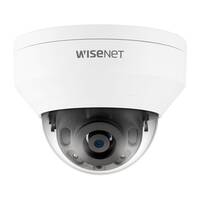 Wisenet Q-netwerk IR-buitencamera vandalisme, 4MP @30fps, 6mm vaste lens, drievoudige codec H.265/H.264/Main/High/MJPEG met WiseStream, meerdere streaming, 120dB WDR, True Day & Night (ICR), IR zichtbare lengte 30m, Bewegingsdetectie, Sabotage, Defocusdetectie, Gangweergave, 1-weg audio, Analyse, Netwerkverbinding verbreken, Alarmingang en microSD/SDHC/SDXC-slot, LDC-ondersteuning (Lens Distortion Correction), IP66, IK10, PoE/12VDC.