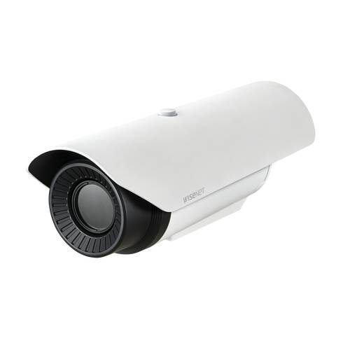 T-serie thermische netwerkcamera voor buitengebruik, VGA bij 30 fps, 19 mm vaste lens (32°), drievoudige codec H.265/H.264/MJPEG met WiseStream II, meerdere streaming, gangweergave, bewegingsdetectie, sabotagedetectie, overdracht, 7 kleurenpaletten, digitale beeldstabilisatie met ingebouwde gyrosensor, bidirectionele audio en microSD/SDHC/SDXC-sleuf, IP66, IK10, Nema 4X, PoE/12VDC/24VAC, PT-type