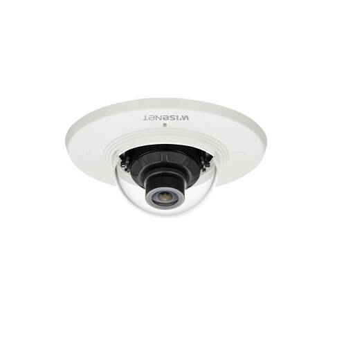 Wisenet X aangedreven door Wisenet 5 netwerk inbouw domecamera, 5MP @ 30fps WDR uit/aan (120dB), 3,7 mm vaste lens (97,5 °), H.265/H.264/MJPEG, WiseStream II compressietechnologie, 120dB WDR, USB-poort voor eenvoudige installatie, geavanceerde videoanalyse, bedrijfsanalyse en geluidsclassificatie, ingebouwde microfoon, magnetische kap, elektronische D/N, SD-kaart, gangzicht, HLC, ontdooidetectie, DIS, PoE.