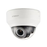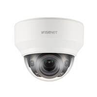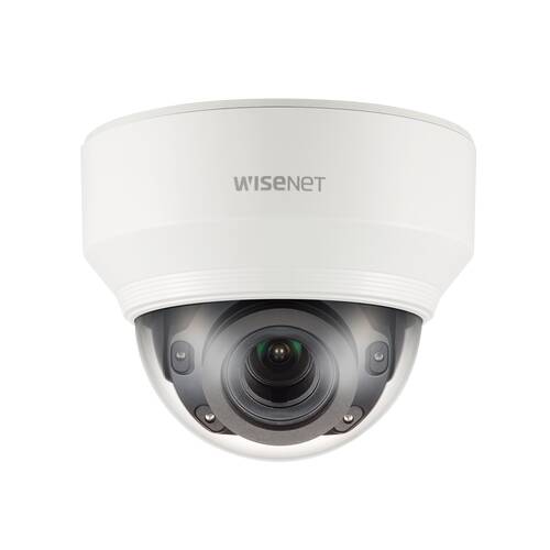 Wisenet X aangedreven door Wisenet 5 netwerk-IR-domecamera voor binnen, 5MP @30fps WDR uit/aan, gemotoriseerde varifocale lens 2,4x (3,9~9,4 mm) (92,1°~38,7°), H.265/H.264/MJPEG , WiseStream II compressietechnologie, 120dB WDR, USB-poort voor eenvoudige installatie, Geavanceerde videoanalyse en geluidsclassificatie, Krachtige IR LED's, bereik van 98', True D/N, Dubbele SD-kaart, Gangzicht, HLC, Ontwasemingsdetectie met eenvoudige focus , DIS , 12VDC/PoE, IK08