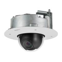De Wisenet X-serie PLUS powered by Wisenet 5 netwerk-domecamera voor binneninbouw heeft een modulaire structuur, 5MP @ 30fps, gemotoriseerde varifocale lens 2,6x (3,6 ~ 9,4 mm) (102,5 ° ~ 38,7 °) en PTRZ-mogelijkheid voor eenvoudige installatie. Triple codec H.265/H.264/MJPEG met WiseStream II-technologie vermindert bandbreedte en opslagvereisten. Extra functies zijn onder meer 120dB WDR, USB-poort voor eenvoudige installatie, geavanceerde videoanalyse, geluidsclassificatie en bedrijfsanalyse, schokdetectie, audioweergave, echte D/N, dubbele SD-kaart, gangzicht, HLC, mistdetectie, DIS (Gyro), 12VDC/PoE, IP52, geschikt voor plenum, witte kleur. Het modulaire ontwerp zorgt voor een eenvoudige installatie van de camerabehuizing, los van de cameramodule. Bovendien bevat de cameramodulebox een uitsparing voor eenvoudige configuratie zonder de camera/behuizing te demonteren.