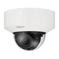 Wisenet X aangedreven door Wisenet 7 AI-netwerk IR-buitencamera vandaal, 6MP @30fps, 4,4 ~ 9,3mm gemotoriseerde varifocale lens (2,1x) (112,1°~47,5°), drievoudige codec H.265/H.264 /MJPEG met WiseStream III, meerdere streaming, 120dB WDR, True Day & Night (ICR), krachtige IR-LED's met een zichtbare IR-lengte van 40m, Analytics-gebeurtenissen op basis van AI-engine (NPU): objectdetectie (persoon / gezicht / voertuig - auto, vrachtwagen , bus, fiets, motorfiets/kenteken), IVA (virtuele lijn/gebied, in-/uitrit, rondhangen, richting, inbraak), analysegebeurtenissen: onscherptedetectie, bewegingsdetectie, sabotage, mistdetectie, HLC, digitale beeldstabilisatie met gyro sensor, bidirectionele audio en enkele microSD/SDHC/SDXC-sleuf, ONVIF S/G/T, USB-poort voor eenvoudige installatie, IP67/IP66, IK10, Nema 4X, PoE/12VDC, inclusief witte skins.
