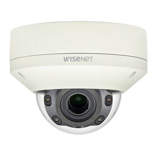 Wisenet X powered by Wisenet 5 vandaal-domecamera voor buiten, 2MP, Full HD (1080p) @60fps, gemotoriseerde varifocale lens 3,1x (3,2~10 mm) (109°~33,2°), drievoudige codec H.265/H. 264/MJPEG met WiseStream II-technologie, 120dB WDR, USB-poort voor eenvoudige installatie, krachtige IR LED's, bereik van 98,43', echte D/N, enkele SD-kaart, gangzicht, HLC, ontdooidetectie, DIS, PoE, IP66, IK10 , -40°C ~ +55°C (-40°F ~ +131°F)