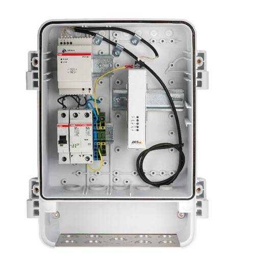 "Elektrische Veiligheidskit A 120 V AC en AXIS Elektrische Veiligheidskit B 230 V AC zijn beschikbaar voor uw AXIS Surveillance Cabinet-serie voor verbeterde beveiliging.
