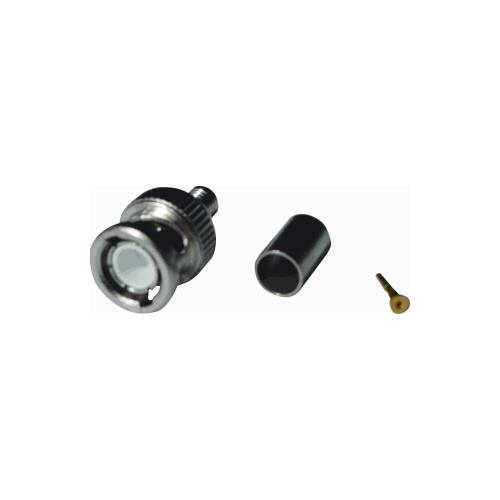 Radiall BNC R142 coax connector plug (steker), connecto rtype BNC, contact uitvoering male, kabeltype RG59/62, aansluitwijze krimp, impedantie 75Ohm, kabeldiameter 6.6mm