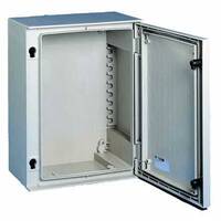 - Gesloten kast, zelfdovend. Thermoplastisch materiaal, gladde afwerking, kleur RAL 7032.