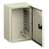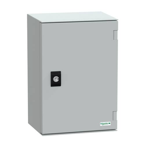 - Gesloten kast, zelfdovend. Thermoplastisch materiaal, gladde afwerking, kleur RAL 7032.