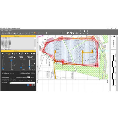 Design Tool voor AXIS Perimeter Defender is een gratis desktoptoepassing waarmee u Axis-camera's op een kaart kunt slepen en neerzetten en de detectiebereiken en blinde vlekken voor verschillende camera's kunt zien bij gebruik van AXIS Perimeter Defender-analyses. De ontwerptool helpt u ook bij het bepalen van de optimale plaatsing van camera's - inclusief PTZ-camera's voor autotracking - voor een effectieve dekking van het terrein.