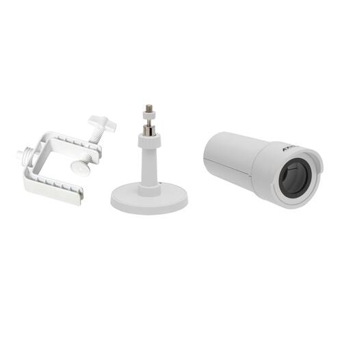 Varifocal bullet-style camera accessory for AXIS F1015. AXIS F1015 provides 58-108° horizontal FOV. Comes with c-clamp and a stand.