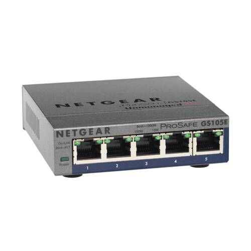 De NETGEAR ProSAFE GS105PE is een switch met 5 Gigabit netwerkpoorten waarvan 2 PoE poorten. De Web Managed (Plus) Switch biedt fundamentele netwerkfuncties die de prestaties van zakelijke netwerken helpen optimaliseren. Bovenop de plug-N-play Gigabit Ethernet connectiviteit biedt de GS105PE ook essentiële netwerkfuncties zoals VLAN, QoS, IGMP-snooping, snelheidsbeperking en verkeersmonitoring.