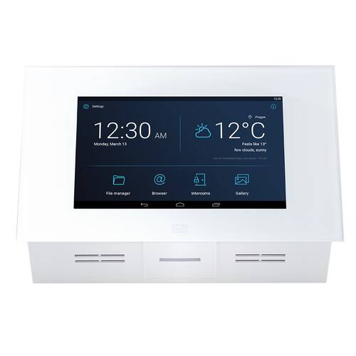Het 2N® Indoor Touch 2.0 antwoordapparaat garandeert betrouwbare videodeurcommunicatie. Het Android-besturingssysteem, de krachtigere hardware en de eenvoudige gebruikersinterface maken het eenvoudig om de 2N® Indoor Touch 2.0 te integreren met applicaties van derden. Zo kunnen huisautomatisering systemen comfortabel worden bediend op het 7“ touchscreen van gehard glas.