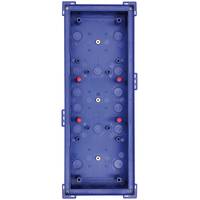 - De blauwe behuizing is stevig verbonden met de ondergrond of het metselwerk. Het kan ook worden gebruikt voor eenvoudige installatie in holle ruimtes: booropening, behuizing plaatsen en stevig vastdraaien; de vasthoudvleugels, die automatisch naar buiten zwaaien, beveiligen de behuizing, terwijl de plastic staven aan de rand van de behuizing voorkomen dat deze in de holte glijdt.