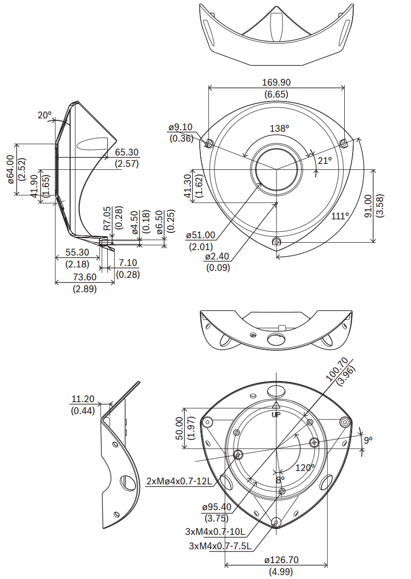 Deze hoekmontagebehuizing is ontworpen voor gebruik met de FLEXIDOME panoramic 5100i. Deze is ook compatibel met de FLEXIDOME IP micro 3000i en de FLEXIDOME IP micro 3000i - outdoor.