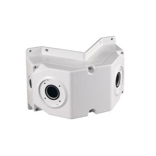 De dubbele hangende wandmontagebeugel ondersteunt meerdere installatietypen, zoals rechtstreekse installatie aan een wand, mast of hoek met behulp van een geschikte adapter. De geïntegreerde draaifunctie zorgt ervoor dat de geïnstalleerde camera altijd waterpas hangt. De beugel zorgt voor eenvoudig kabelbeheer en kan worden gecombineerd met extra opbouwdozen voor buisaansluitingen. Het is een veilige en robuuste oplossing om camera's rechtstreeks aan een wand of plafond te monteren in combinatie met de volgende accessoire: