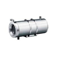 De robuuste constructie van deze behuizing maakt hem geschikt voor zware toepassingen, zoals de bewaking van ovens, gieterijen en andere omgevingen met hoge temperaturen. De NXW-behuizing is volledig vervaardigd uit elektrolytisch gepolijst roestvrij staal en bestaat uit een behuizing met een dubbele kamer voor de circulatie van een koelvloeistof of lucht. De NXW is aan beide uiteinden afgesloten door twee dikke flenzen en maakt kabeldoorvoer mogelijk via twee PG13.5-kabelwartels op de achterste flens. De voorste flens kan voor hogere temperaturen worden voorzien van gehard glas of kwartsglas.