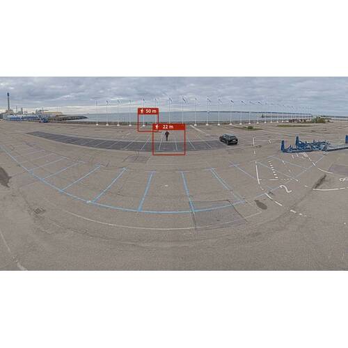 Ideaal voor het bewaken van grote open gebieden, deze analytische toepassing combineert 180° radar detectie en 180° panoramische multisensor beelden voor verbeterd situatiebewustzijn met minimale valse alarmen. Het kan mensen tot 60 meter en voertuigen tot 85 meter nauwkeurig detecteren en presenteert die gegevens als visuele, aanpasbare overlays in de cameraweergave. De gegevens kunnen ook worden gebruikt om gebeurtenissen te activeren, bijvoorbeeld om stroboscooplichten te activeren wanneer een object een vooraf gedefinieerd gebied binnenkomt. Bovendien is het mogelijk om de snelheid van passerende voertuigen in de overlay weer te geven.