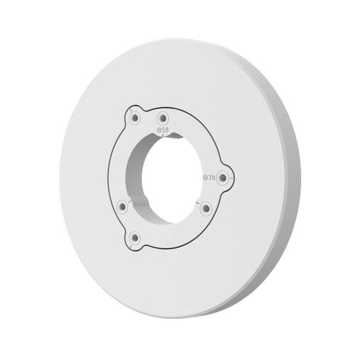 Gangplaat (voor Bullet) Adapterplaat voor enkel, dubbel, 4" achthoek • Kleur: Wit • Materiaal: Kern-aluminium / Kap-plastic • Afmetingen/gewicht: ø140x13,2mm(ø5,52x0,52")/ 190g(0,42lb) • Maat montageschroef: TR20