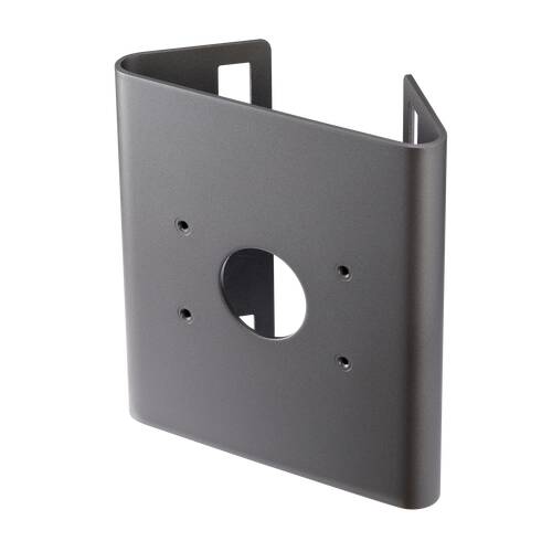 De SBP-302PM paalmontage-adapter, in donkergrijs, wordt gebruikt om de installatie van een bulletcamera op een cilindrische pilaar met een diameter van 80 mm of meer mogelijk te maken. Inclusief roestvrijstalen bevestigingsriemen.