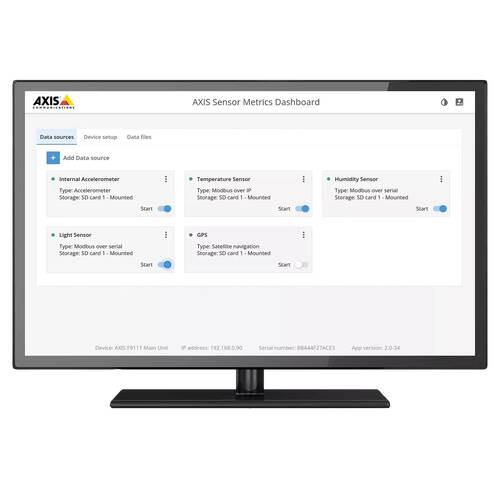 AXIS Sensor Metrics Dashboard is pre-installed on all AXIS F91 Main Units. The application allows you to collect, visualize, and store data.