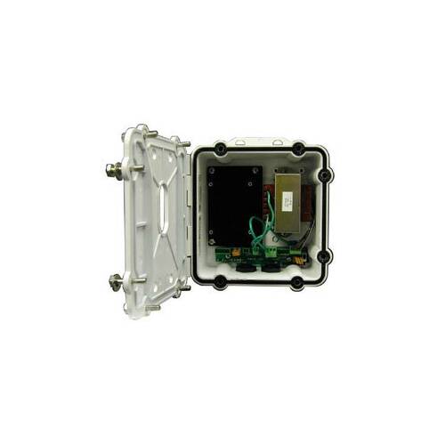 SNCA-POWERBOX Outdoor IP66 adapter voor muur- / paalmontage-backbox. Gegoten aluminium. Inclusief riemen. Bedrijfsspanning 110 / 230V AC. Bedrijfsspanning uitgang 24V AC, max. 4A.