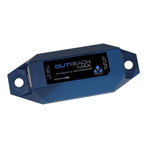Veracity Outreach Max Ethernet-extender met PoE voor het verlengen van de kabelafstand van LAN aansluiting, gebruik per 90 meter. Bekabeling in een Ethernet netwerk is gelimiteerd aan 100 meter kabellengte. De Outreach modules verhelpen dit probleem met een eenvoudig aan te sluiten oplossing. Een Outreach module verbind twee kabels dmv RJ45 connectoren, zodat er een bruikbare kabellengte ontstaat van 200 meter. Afhankelijk van de toegepaste POE switch en camera's kan deze afstand oplopen tot 300 meter. Outreach is volledig transparant tot de link, welke het mogelijk maakt een full-duplex 100Base-T verbinding op te bouwen zonder enige restrictie. De Outreach modules verkrijgen hun stroomvoorziening door gebruik te maken van POE switches of PoE injectoren zoals de onderstaande 3Com PoE midspan unit. De modules kunnen de POE stroomvoorziening ook doorgeven naar de camera of VOIP telefoon. Dit is echter afhankelijk van het benodigde vermogen. Bij gebruik van een PTZ camera met Hight PoE dient als laatste wel de High PoE unit te worden aangesloten bij een 220V stroompunt. De Veracity producten kunnen geen High PoE doorsturen.