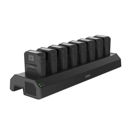 AXIS W701Mk II Docking Station 8-bay maakt eenvoudige bediening van de Body Camera's mogelijk met snel opladen, veilig en gemakkelijk ontladen van gegevens.