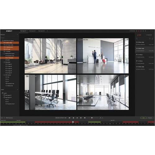 Wisenet Viewer NVR/DVR-beheersoftware, ondersteuning voor Windows en macOS, AI-zoekfunctie (persoon, gezicht, voertuig, kentekenplaatherkenning). Gratis software met App voor IOS en Android